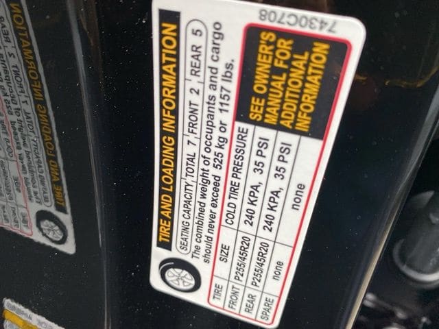 - Front tires: 255/45WR20.0