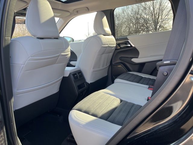3rd row seats: split-bench, 4-Wheel Disc Brakes, 8 Speakers, ABS brakes, Air Conditioning, Alloy wheels, AM/FM radio: SiriusXM, Android Auto & Apple CarPlay, Auto High-beam Headlights, Auto-dimming Rear-View mirror, Automatic temperature control, Brake assist, Bumpers: body-color, Compass, Delay-off headlights, Driver door bin, Driver vanity mirror, Dual front impact airbags, Dual front side impact airbags, Electronic Stability Control, Emergency communication system: Mitsubishi Connect w/ 24-month trial, Exterior Parking Camera Rear, Four wheel independent suspension, Front anti-roll bar, Front Bucket Seats, Front Center Armrest w/Storage, Front dual zone A/C, Front fog lights, Front reading lights, Fully automatic headlights, Garage door transmitter: HomeLink, Heated door mirrors, Heated Front Bucket Seats, Heated front seats, Illuminated entry, Knee airbag, Leather Shift Knob, Leather steering wheel, Low tire pressure warning, Navigation System, Occupant sensing airbag, Outside temperature display, Overhead airbag, Overhead console, Panic alarm, Passenger door bin, Passenger vanity mirror, Power door mirrors, Power driver seat, Power Liftgate, Power steering, Power windows, Radio data system, Radio: AM/FM 12.3" Navigation with Smartphone-Link, Rain sensing wipers, Rear anti-roll bar, Rear seat center armrest, Rear side impact airbag, Rear window defroster, Rear window wiper, Reclining 3rd row seat, Remote keyless entry, Security system, Speed control, Speed-Sensitive Wipers, Split folding rear seat, Spoiler, Steering wheel mounted audio controls, Synthetic Leather Seating Surfaces, Tachometer, Telescoping steering wheel, Tilt steering wheel, Traction control, Trip computer, Turn signal indicator mirrors, Variably intermittent wipers, Wheels: 20" Two-Tone Alloy.