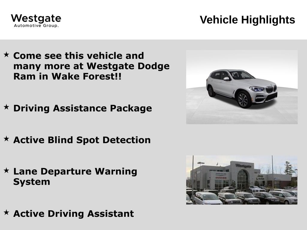 8-Speed Automatic, Active Blind Spot Detection, Active Driving Assistant, Driving Assistance Package, Lane Departure Warning System, 12 Speakers, 3.39 Axle Ratio, 4-Wheel Disc Brakes, ABS brakes, Air Conditioning, Alloy wheels, AM/FM radio, Auto-dimming door mirrors, Auto-dimming Rear-View mirror, Automatic temperature control, Brake assist, Bumpers: body-color, Delay-off headlights, Driver door bin, Driver vanity mirror, Dual front impact airbags, Dual front side impact airbags, Electronic Stability Control, Emergency communication system: BMW Assist eCall, Exterior Parking Camera Rear, Four wheel independent suspension, Front anti-roll bar, Front Bucket Seats, Front Center Armrest, Front dual zone A/C, Front fog lights, Front reading lights, Fully automatic headlights, Garage door transmitter, Genuine wood dashboard insert, Genuine wood door panel insert, Hands-Free Bluetooth & USB Audio Connection, Heated door mirrors, Hi-Fi Sound System, Illuminated entry, Knee airbag, Low tire pressure warning, Memory seat, Occupant sensing airbag, Outside temperature display, Overhead airbag, Panic alarm, Passenger door bin, Passenger vanity mirror, Power door mirrors, Power driver seat, Power Front Seats, Power Liftgate, Power passenger seat, Power steering, Power windows, Radio data system, Radio: AM/FM Stereo w/HD, Rain sensing wipers, Rear air conditioning, Rear anti-roll bar, Rear Manual Side Window Shades, Rear reading lights, Rear seat center armrest, Rear window defroster, Rear window wiper, Remote keyless entry, Roof rack: rails only, Security system, SensaTec Upholstery, Speed control, Speed-sensing steering, Speed-Sensitive Wipers, Split folding rear seat, Spoiler, Sport Bucket Seats, Sport Leather Steering Wheel, Sport steering wheel, Steering wheel mounted audio controls, Tachometer, Telescoping steering wheel, Tilt steering wheel, Traction control, Trip computer, Turn signal indicator mirrors, Variably intermittent wipers, Wheels: 18" x 7.0" Y-Spoke (Style 688), Wheels: 19" x 7.5" V-Spoke (Style 692), Come see this vehicle and many more at Westgate Dodge Ram in Wake Forest!!, 8-Speed Automatic, Active Blind Spot Detection, Active Driving Assistant, Driving Assistance Package, Lane Departure Warning System.