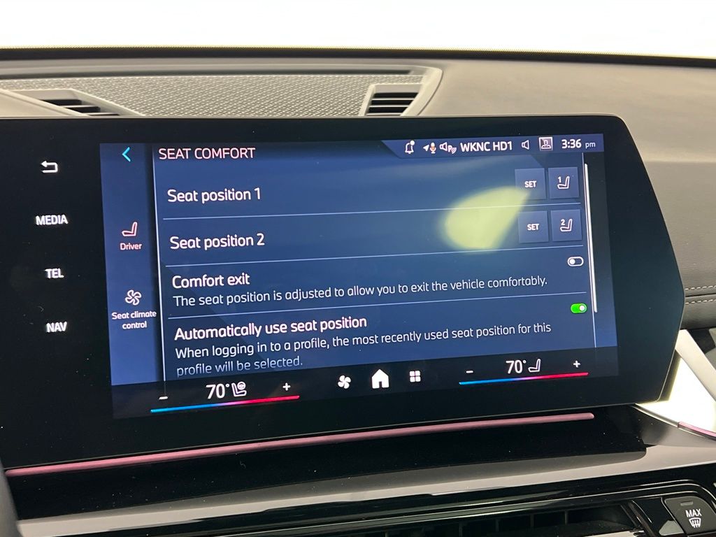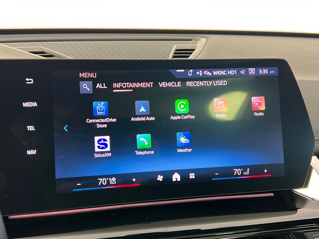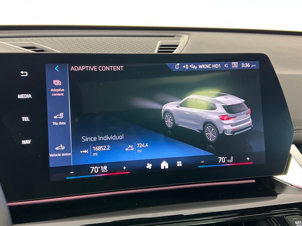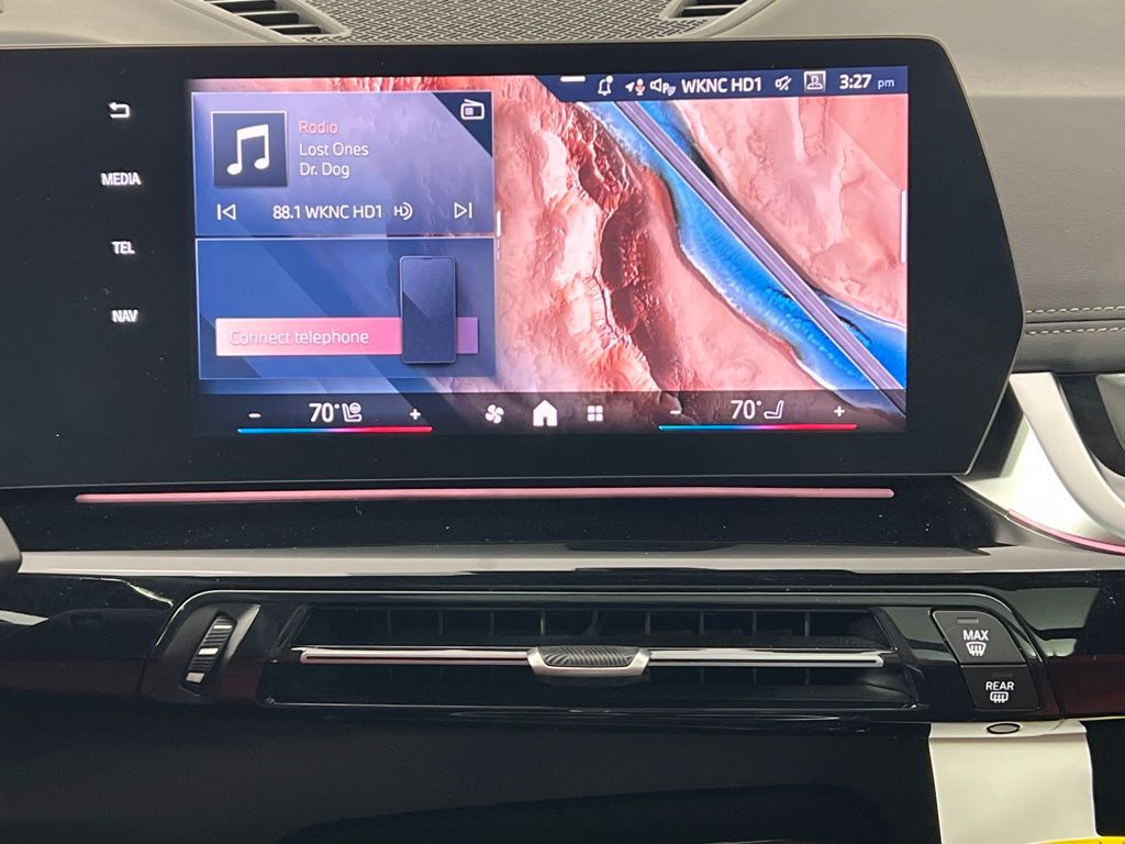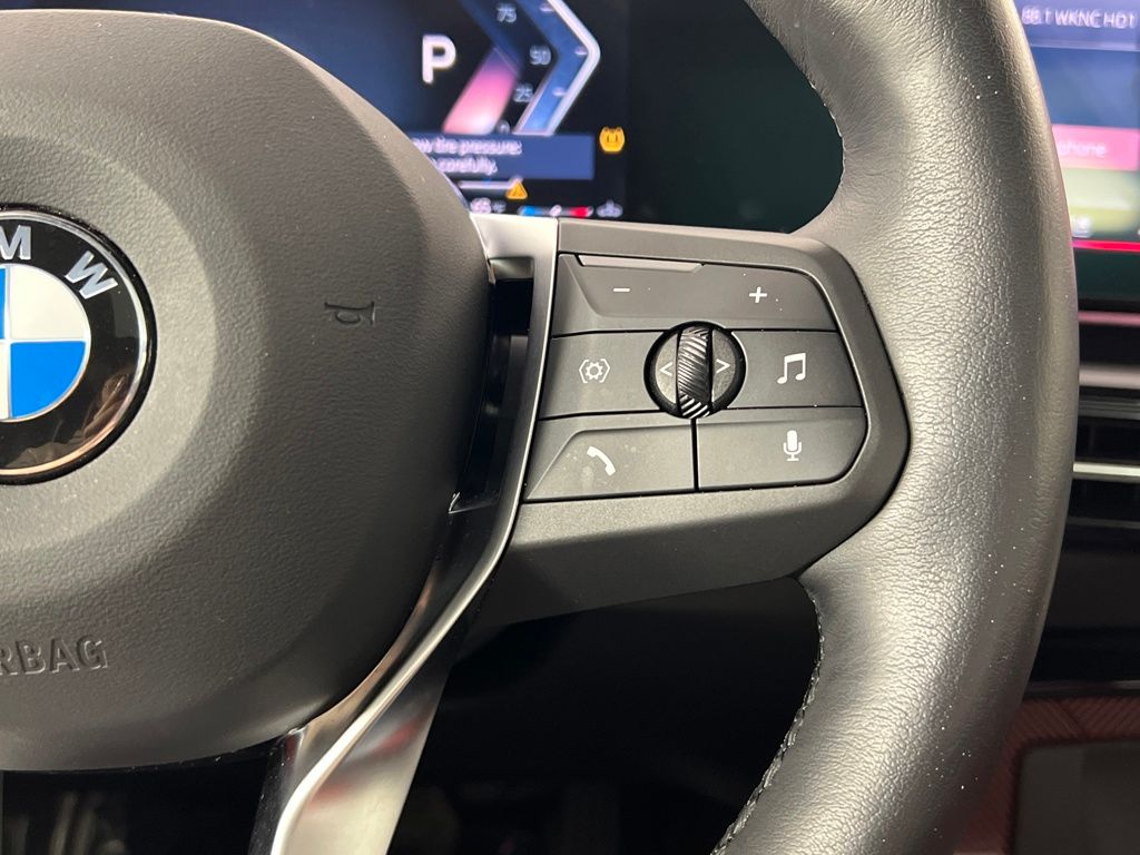 4-Wheel Disc Brakes, 7 Speakers, ABS brakes, Air Conditioning, Alloy wheels, AM/FM Radio, AM/FM radio: SiriusXM with 360L, Apple CarPlay and Android Auto Compatibility, Apple CarPlay Compatibility, Auto High-beam Headlights, Automatic temperature control, BMW Assist ECall, BMW TeleServices, Brake assist, Bumpers: body-color, Compass, Delay-off headlights, Driver door bin, Driver vanity mirror, Dual front impact airbags, Dual front side impact airbags, Electronic Stability Control, Emergency communication system: BMW Assist eCall, Exterior Parking Camera Rear, Four wheel independent suspension, Front anti-roll bar, Front Bucket Seats, Front Center Armrest w/Storage, Front dual zone A/C, Front reading lights, Heated door mirrors, Heated Front Seats, Heated front seats, Illuminated entry, Knee airbag, Leather steering wheel, Low tire pressure warning, Memory seat, Navigation, Navigation System, Occupant sensing airbag, Outside temperature display, Overhead airbag, Overhead console, Panic alarm, Passenger door bin, Passenger vanity mirror, Perforated Veganza Upholstery, Personal ESIM 5G, Power door mirrors, Power driver seat, Power Front Seats, Power Liftgate, Power passenger seat, Power steering, Power windows, Radio data system, Rain sensing wipers, Rear anti-roll bar, Rear reading lights, Rear seat center armrest, Rear window defroster, Rear window wiper, Remote keyless entry, Security system, SiriusXM with 360L and 1 Year Platinum Plan Subscription, Speed control, Speed-sensing steering, Speed-Sensitive Wipers, Split folding rear seat, Spoiler, Steering wheel mounted audio controls, Tachometer, Telescoping steering wheel, Tilt steering wheel, Traction control, Trip computer, Turn signal indicator mirrors, Variably intermittent wipers, Wheels: 18" x 7.5" V-Spoke Bi-Color, Widescreen Display.