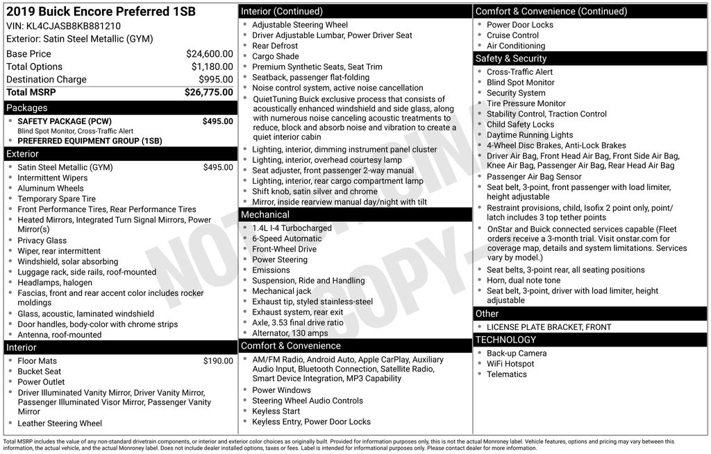 Whether commuting, running errands, or embarking on a weekend getaway, this 2019 Buick Encore Preferred delivers the perfect combination of comfort, technology, and capability. Experience the difference for yourself - schedule a test drive today at Westgate Chrysler Jeep Dodge Ram in Raleigh.