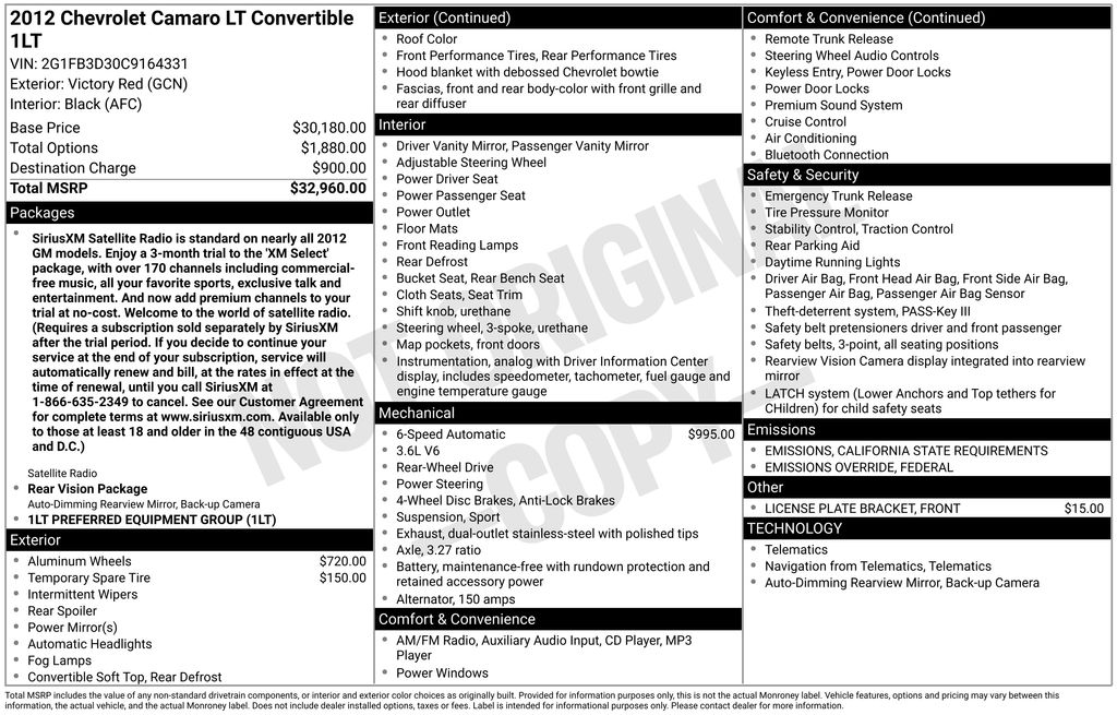 2012 Chevrolet Camaro 1LT