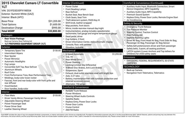 This 2015 Chevrolet Camaro 1LT boasts an impressive array of features that are sure to captivate the discerning driver. Highlights include: