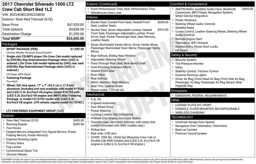 This 2017 Chevrolet Silverado 1500 LTZ 1LZ comes equipped with a remarkable array of premium features, including:
