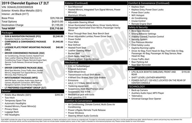 Whether you're commuting, running errands, or embarking on a weekend getaway, this 2019 Chevrolet Equinox LT is the perfect companion. With its impressive capabilities, comprehensive features, and sleek Kinetic Blue Metallic exterior, this Equinox is sure to impress.