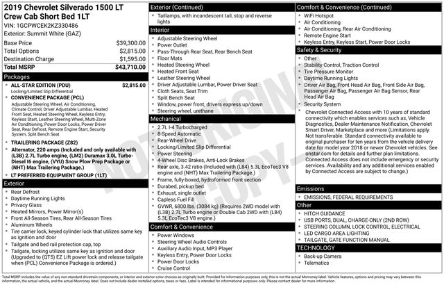 I traded up from a 2017 (which was already a great truck!) to a 2019 and wow what an improvement! I have the 5.3 with 8 speed tranny, which is smooth shifting, super quiet ride, etc, etc. Chevy as the controls and buttons all figured out nicely for easy of use. The backseat of this crew cab is even bigger than the previous model; its so big the kids can almost play football back there. Definitely another great value from Chevy. Minor irksome points include the goofy tilt/telescoping steering wheel. The previous model had a simply stalk that allowed easy up/down but the 2019 uses a goofball 'Japanese style' system, which is ery annoying and cumbersome to use. Also missing the ashtray (not for smoking but for storing small items like trailer keys, chapstick, and stuff). Also, they took away the third cup holder in the front/center, which is also annoying since I always have two different drinks while my passenger also has her own. But everything else is awesome and absolutely love this truck!