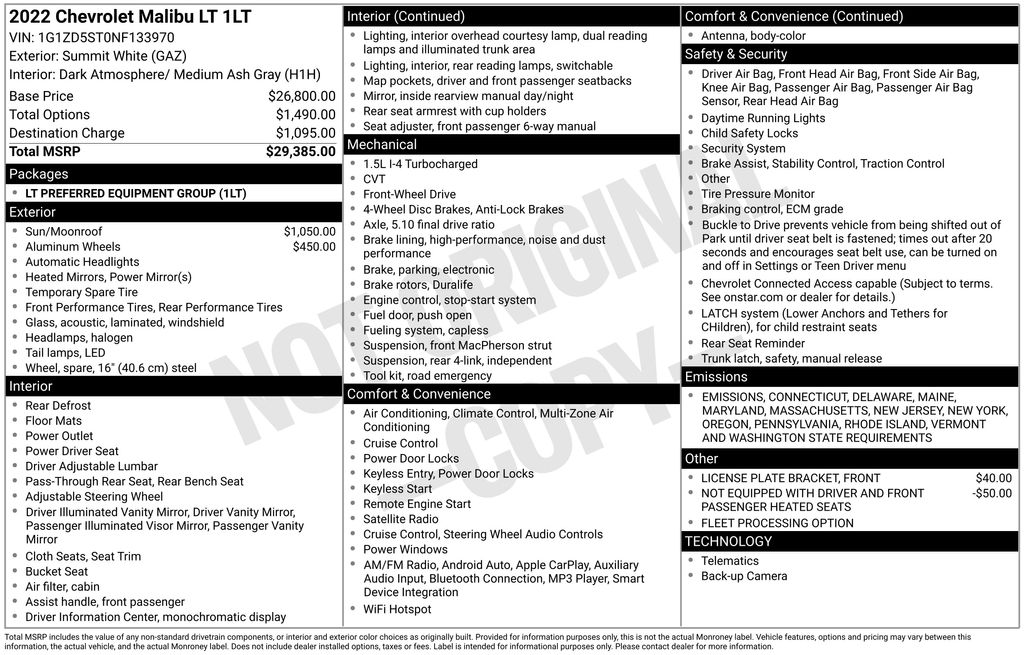 This 2022 Chevrolet Malibu LT offers exceptional value and a wealth of premium features. With its sleek white exterior and spacious, well-appointed interior, this Malibu is the perfect blend of style and substance.