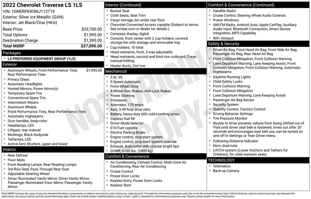 2022 Chevrolet Traverse LS FWD Clean CARFAX.