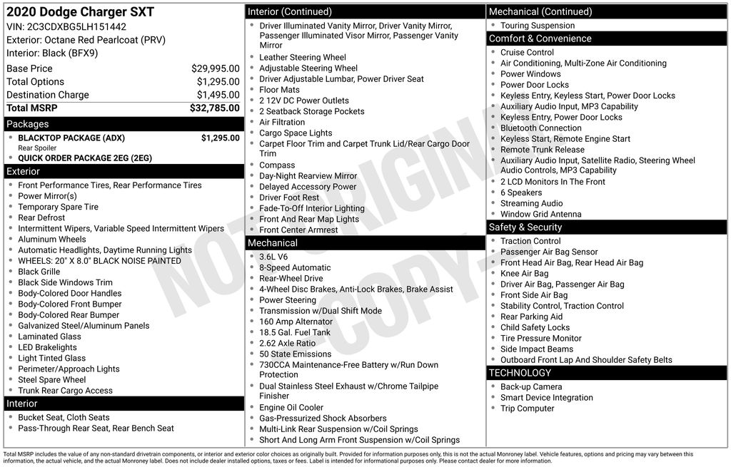 With its one-owner history and clean CARFAX report, this 2020 Dodge Charger SXT represents an exceptional value and an opportunity to own a truly remarkable performance sedan. Don't miss your chance to experience the power, style, and technology that make the Charger a standout in its class.