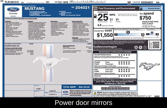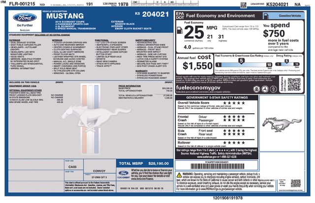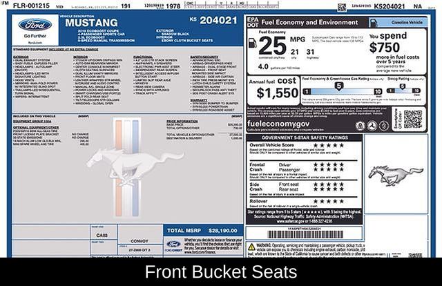 Under the hood, this Mustang packs a potent 2.3L EcoBoost I4 engine mated to a 6-speed manual transmission, delivering an engaging and responsive driving dynamics. With 21 MPG city and 31 MPG highway, this Mustang offers an impressive blend of performance and efficiency.