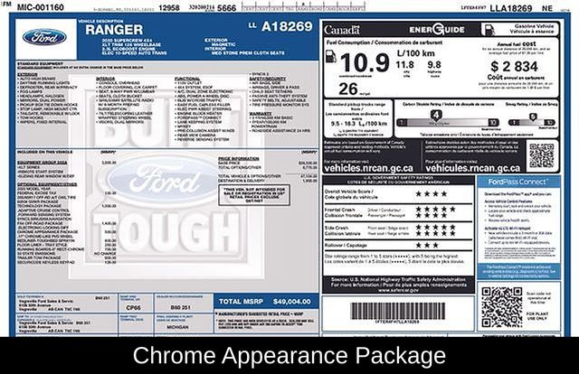 Elevate your adventures with the FX4 Off-Road Package, which equips the Ranger with rugged features like skid plates, off-road-tuned suspension, and an electronic-locking rear differential. The Chrome Appearance Package and Sport Appearance Package add a touch of style, while the Technology Package keeps you connected and informed on the go.