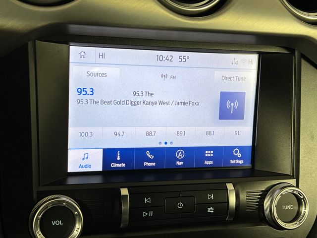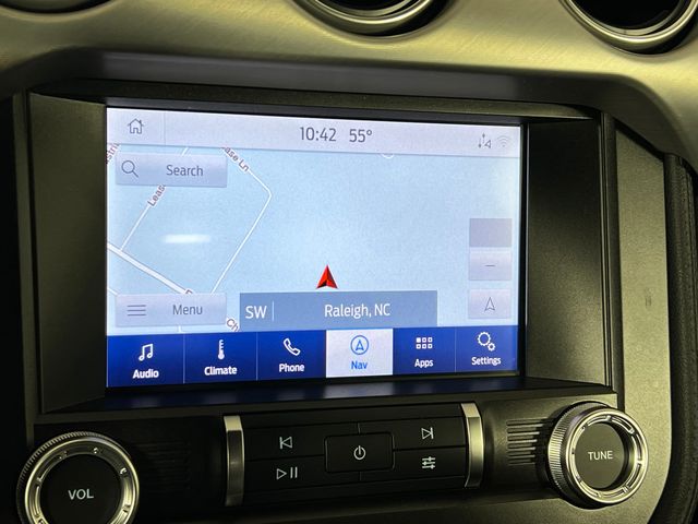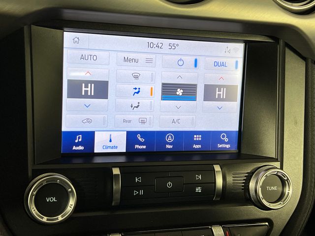 The interior of this Mustang GT Premium is equally impressive, with premium features such as a leather-wrapped shift knob, remote start system, and a voice-activated navigation system with pinch-to-zoom capability. The Ford Safe & Smart Package adds advanced safety technologies, including adaptive cruise control, to provide you with added peace of mind on the road.