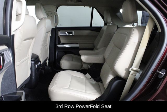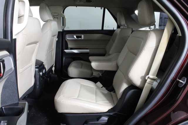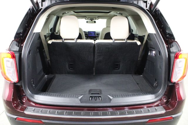 The exterior of this Explorer Limited showcases a stunning Burgundy Velvet Tinted Clearcoat finish, complemented by the 20" 10-Spoke Aluminum wheels. The Cargo Area Management System, including a cargo net, cargo well rubber mat, and reversible load floor, ensures your belongings are securely and conveniently stored.
