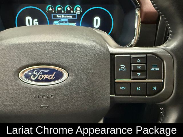 Step inside and you'll be greeted by the luxurious Lariat interior, complete with leather-trimmed bucket seats, a heated steering wheel, and a premium B&O sound system that will immerse you in your favorite music. The twin-panel moonroof lets in natural light, creating an airy and inviting atmosphere, while the advanced safety features like Intelligent Adaptive Cruise Control and Evasive Steering Assist provide added peace of mind on the road.