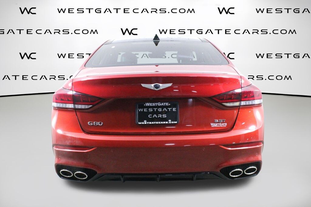 The G80's advanced safety features, including a comprehensive suite of airbags, electronic stability control, and an emergency communication system, provide you and your loved ones with the utmost protection. Enjoy the convenience of hands-free keyless entry, a power moonroof, and a heads-up display that keeps critical information in your line of sight. With its striking red exterior and meticulously crafted interior, this Genesis G80 3.3T Sport is a true standout in its class.