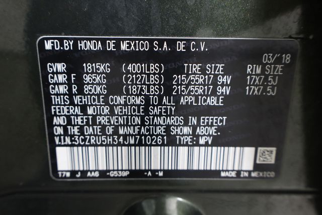 This 2018 Honda HR-V LX offers an impressive blend of versatility, efficiency, and advanced technology. With its sleek green exterior, this compact crossover SUV is sure to turn heads wherever you go. Under the hood, the 1.8L I4 SOHC 16V i-VTEC engine and CVT transmission provide a smooth, responsive driving experience while delivering an exceptional 25 city / 33 highway MPG.