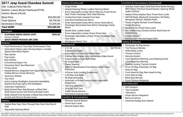 This stunning 2017 Jeep Grand Cherokee Summit boasts an impressive array of premium features that elevate the driving experience. Highlights include: