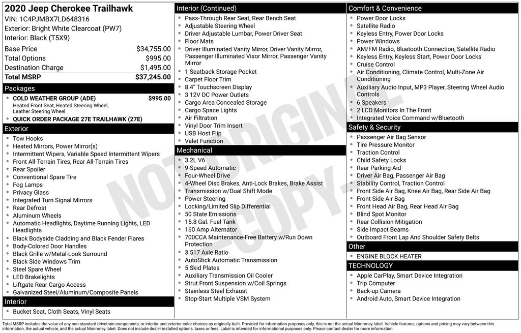 This 2020 Jeep Cherokee Trailhawk comes equipped with an impressive array of premium features, including: