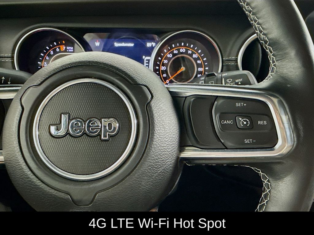Step inside, and you'll be greeted by a premium leather-trimmed interior with the Sahara logo, offering exceptional comfort and style. The 8.4-inch Uconnect touchscreen display provides seamless connectivity, with features like GPS navigation, Apple CarPlay, Android Auto, and a premium Alpine audio system. Stay warm on chilly days with the heated steering wheel and front seats, and enjoy the convenience of remote keyless entry and remote start.