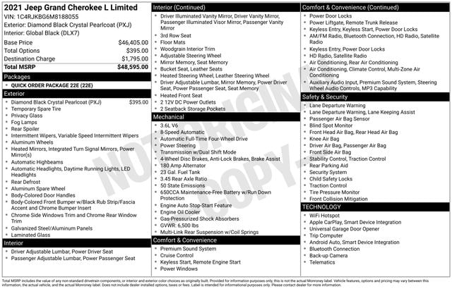 This 2021 Jeep Grand Cherokee L Limited checks all the boxes for the modern family. Boasting a stunning Black exterior and a spacious, well-appointed interior, this SUV is ready to elevate your driving experience. Let's explore the standout features that make this vehicle a must-have: