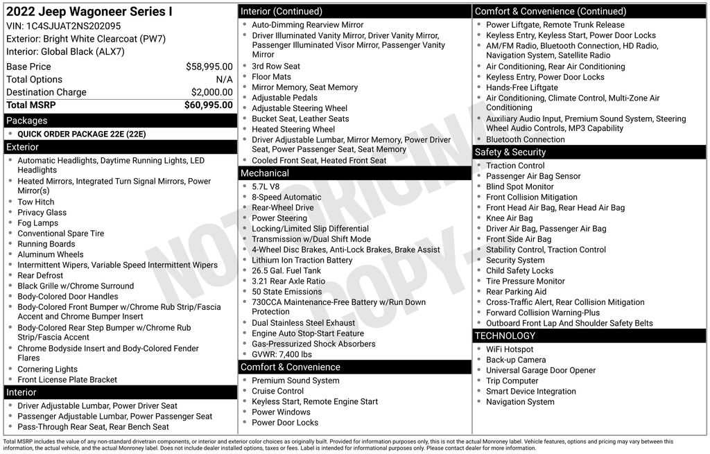 Whether you're embarking on a family adventure or seeking a commanding presence on the highway, this 2022 Jeep Wagoneer Series I is a remarkable vehicle that delivers exceptional capability, comfort, and style. Experience the difference for yourself and schedule a test drive today.