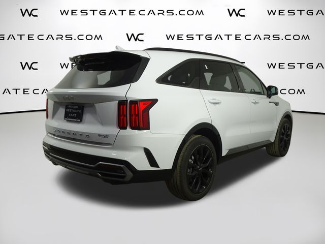 This Sorento SX also boasts a powerful 2.5L turbocharged engine, delivering an exceptional blend of performance and efficiency. With 281 horsepower and an impressive 29 MPG on the highway, you'll conquer the road with confidence and style.