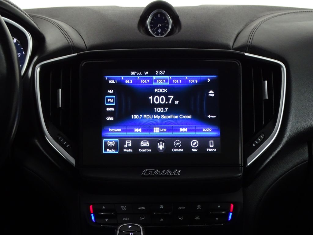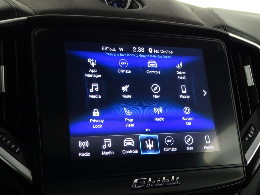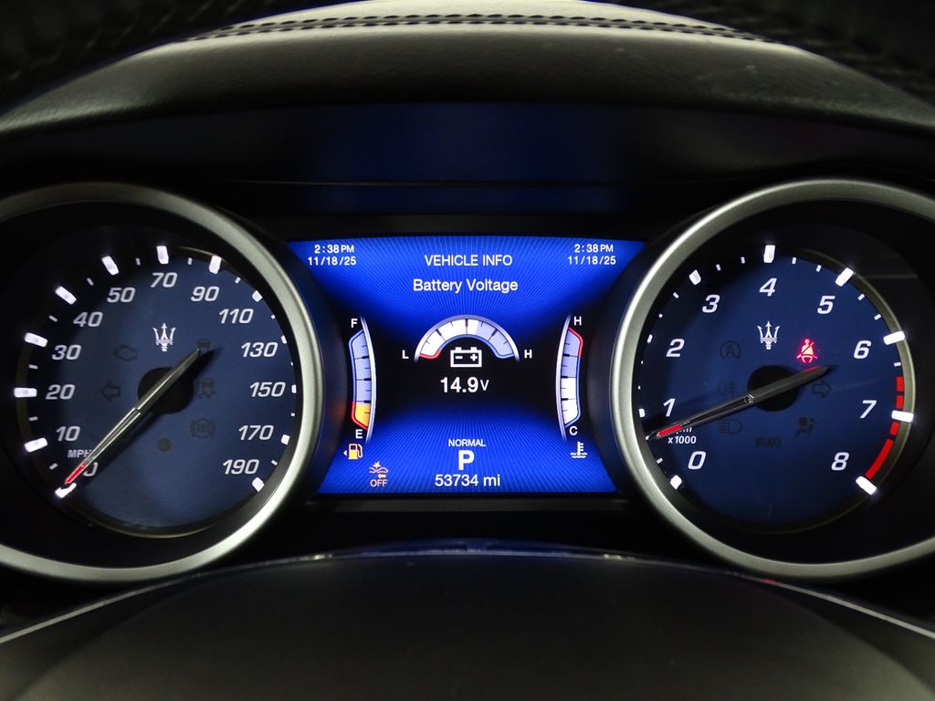 12-Way Power Heated Front Seats, 4-Wheel Disc Brakes, 8 Speakers, ABS brakes, Air Conditioning, Alloy wheels, Aluminum Column-Mounted Paddle Shifters, AM/FM radio: SiriusXM, Anti-whiplash front head restraints, Apple CarPlay/Android Auto, Auto-dimming door mirrors, Auto-dimming Rear-View mirror, Automatic temperature control, Brake assist, Bumpers: body-color, Compass, Delay-off headlights, Driver door bin, Driver vanity mirror, Dual front impact airbags, Dual front side impact airbags, Electronic Stability Control, Extended Leather Upholstery w/Contrast Stitching, Exterior Parking Camera Rear, Four wheel independent suspension, Front anti-roll bar, Front Bucket Seats, Front Center Armrest w/Storage, Front dual zone A/C, Front reading lights, Garage door transmitter: HomeLink, harmon/kardon 900 Watts Premium Audio System, Heated door mirrors, Heated front seats, High intensity discharge headlights: Bi-Xenon, Illuminated entry, Knee airbag, Leather Shift Knob, Leather steering wheel, Low tire pressure warning, Memory seat, Navigation System, Occupant sensing airbag, Outside temperature display, Overhead airbag, Overhead console, Panic alarm, Passenger door bin, Passenger vanity mirror, Power door mirrors, Power driver seat, Power moonroof, Power passenger seat, Power steering, Power windows, Radio data system, Radio: AM/FM w/Maserati Touch Control Plus & Nav, Rain sensing wipers, Rear anti-roll bar, Rear fog lights, Rear reading lights, Rear seat center armrest, Rear window defroster, Remote keyless entry, Security system, Speed control, Speed-sensing steering, Speed-Sensitive Wipers, Split folding rear seat, Steering wheel memory, Steering wheel mounted audio controls, Tachometer, Telescoping steering wheel, Tilt steering wheel, Traction control, Trip computer, Turn signal indicator mirrors, Variably intermittent wipers, Ventilated Front Seats, Voltmeter, Wheels: 19" Silver Poseidone, Wheels: 20" Urano Machine Polished.