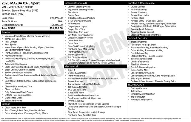 Whether you're navigating the city streets or exploring the open road, this 2020 Mazda CX-5 Sport is ready to exceed your expectations. With its exceptional fuel efficiency, impressive technology, and versatile capabilities, this CX-5 is a must-see for any discerning buyer.