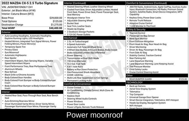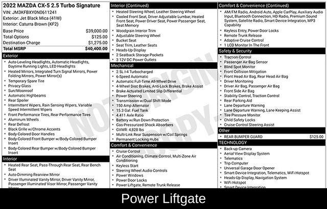 With its exceptional performance, advanced technology, and refined design, this 2022 Mazda CX-5 2.5 Turbo Signature is the perfect blend of style, capability, and convenience. Imagine yourself behind the wheel, effortlessly navigating the roads with confidence and comfort.