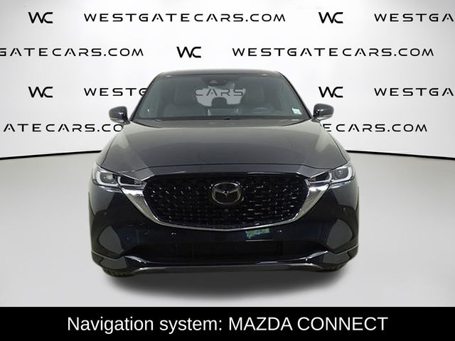The CX-5's sleek Black exterior and premium Nappa Leather-trimmed interior create a sophisticated, upscale presence. Thoughtful features like the Bose premium audio system, dual-zone automatic climate control, and a power-adjustable driver's seat with memory settings ensure a comfortable and connected driving experience.