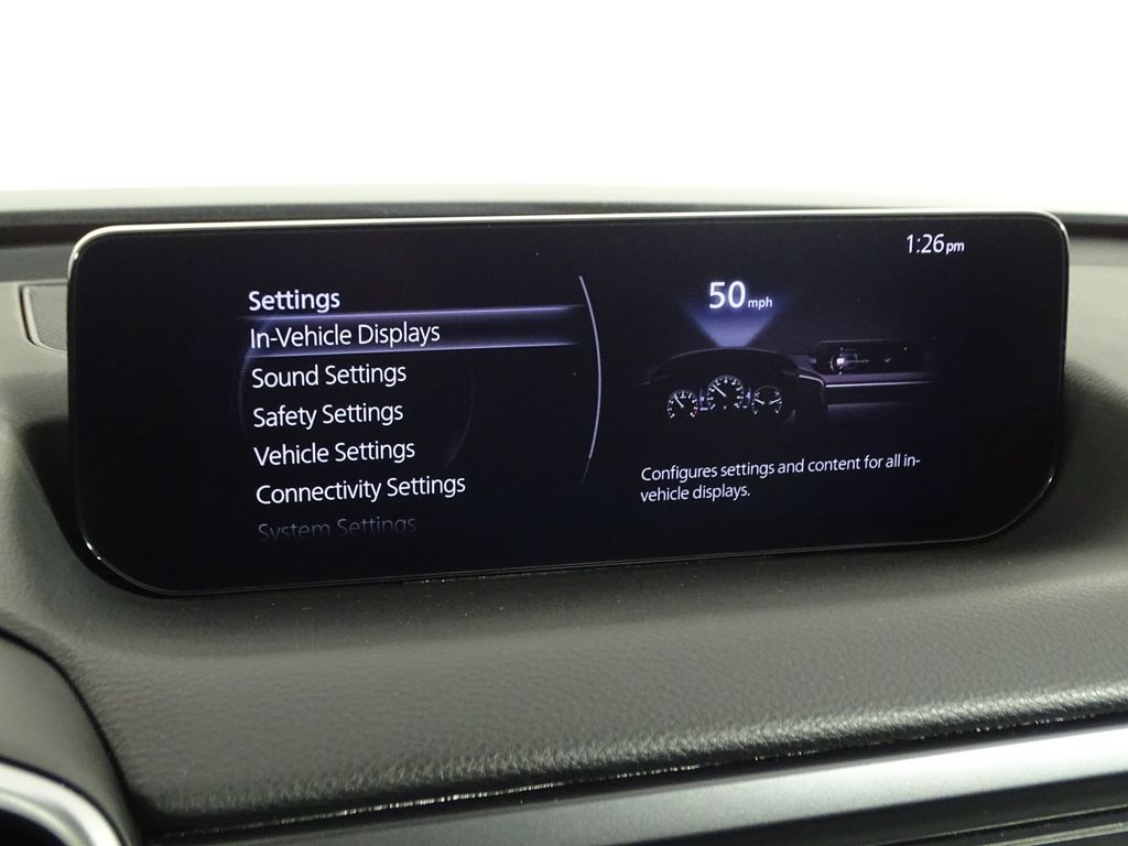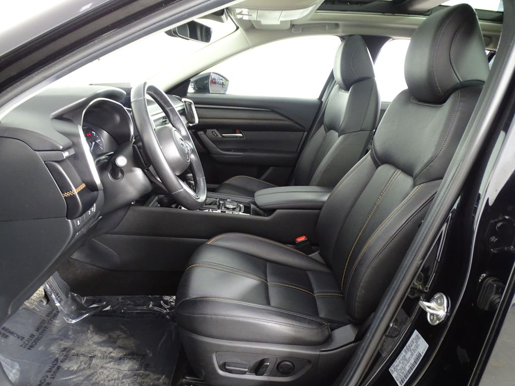 20" x 8J Aluminum Alloy Wheels, 3.841 Axle Ratio, 4-Wheel Disc Brakes, 8 Speakers, ABS brakes, Air Conditioning, Alloy wheels, AM/FM radio, AppLink/Apple CarPlay and Android Auto, Auto High-beam Headlights, Auto-dimming Rear-View mirror, Automatic temperature control, Brake assist, Bumpers: body-color, Cargo Blocks, Cargo Package, Carpet Cargo Mat, Compass, Delay-off headlights, Driver door bin, Driver vanity mirror, Dual front impact airbags, Dual front side impact airbags, Electronic Stability Control, Emergency communication system: MAZDA CONNECT, Exterior Parking Camera Rear, Front anti-roll bar, Front Bucket Seats, Front Center Armrest, Front dual zone A/C, Front reading lights, Front wheel independent suspension, Fully automatic headlights, Garage door transmitter: HomeLink, Heated door mirrors, Heated Front Bucket Seats, Heated front seats, Illuminated entry, Knee airbag, Leather Seat Trim, Leather Shift Knob, Leather steering wheel, Low tire pressure warning, Memory seat, Occupant sensing airbag, Outside temperature display, Overhead airbag, Overhead console, Panic alarm, Passenger door bin, Passenger vanity mirror, Power door mirrors, Power driver seat, Power Liftgate, Power moonroof, Power passenger seat, Power steering, Power windows, Radio data system, Radio: AM/FM/HD Audio System, Rain sensing wipers, Rear seat center armrest, Rear window defroster, Rear window wiper, Remote keyless entry, Silver Cross Bars, Speed control, Speed-sensing steering, Split folding rear seat, Spoiler, Steering wheel mounted audio controls, Tachometer, Telescoping steering wheel, Tilt steering wheel, Traction control, Trip computer, Turn signal indicator mirrors, Variably intermittent wipers.