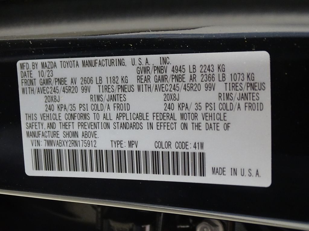 - Front tires: 245/45HR20.0