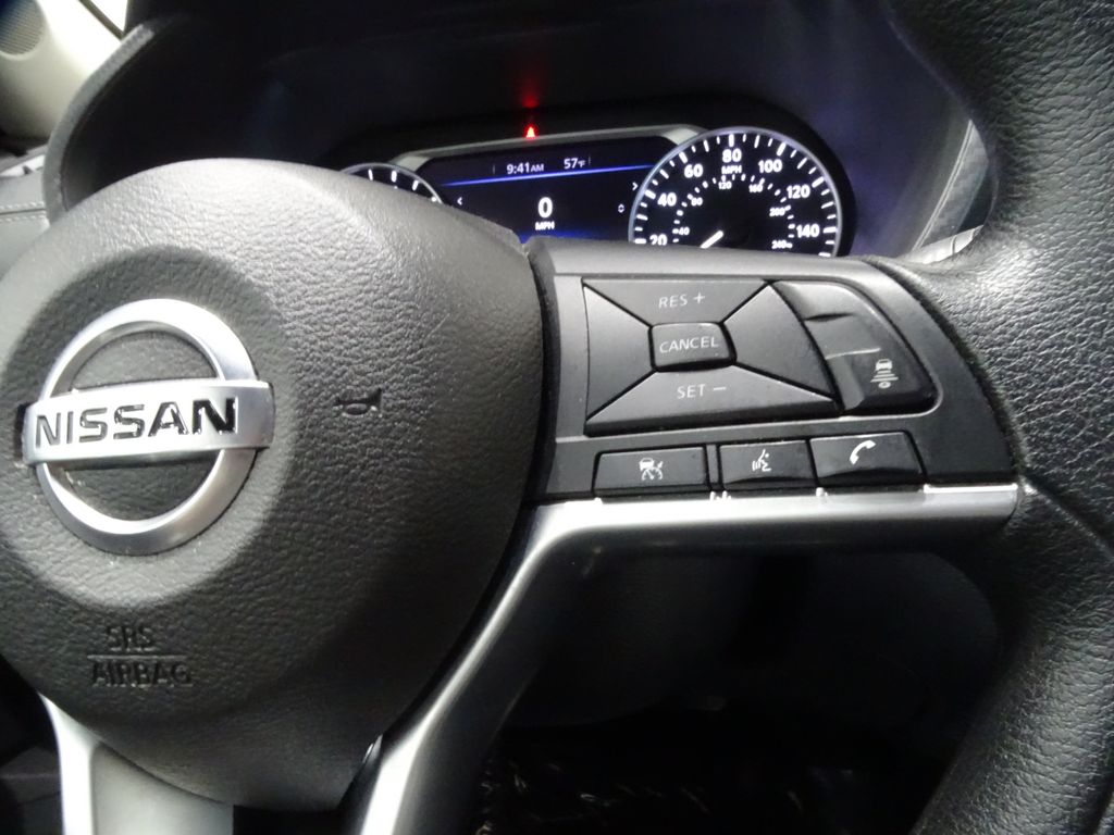 CVT with Xtronic, Charcoal Cloth, 16" Alloy Wheels, 4-Wheel Disc Brakes, 6 Speakers, ABS brakes, Air Conditioning, Alloy wheels, AM/FM radio: SiriusXM, Auto High-beam Headlights, Blind Spot Warning, Brake assist, Bumpers: body-color, Delay-off headlights, Driver door bin, Driver vanity mirror, Dual front impact airbags, Dual front side impact airbags, Electronic Stability Control, Four wheel independent suspension, Front anti-roll bar, Front Bucket Seats, Front Center Armrest, Front reading lights, Fully automatic headlights, Heated door mirrors, Illuminated entry, Knee airbag, Low tire pressure warning, NissanConnect featuring Apple CarPlay and Android Auto, Occupant sensing airbag, Outside temperature display, Overhead airbag, Overhead console, Panic alarm, Passenger door bin, Passenger vanity mirror, Power door mirrors, Power steering, Power windows, Premium Cloth Seat Trim, Radio data system, Radio: AM/FM w/RDS/MP3/Aux-In, Rear anti-roll bar, Rear Parking Sensors, Rear side impact airbag, Rear window defroster, Remote keyless entry, Security system, Speed control, Speed-sensing steering, Split folding rear seat, Steering wheel mounted audio controls, Tachometer, Telescoping steering wheel, Tilt steering wheel, Traction control, Trip computer, Variably intermittent wipers, CVT with Xtronic, Charcoal Cloth.