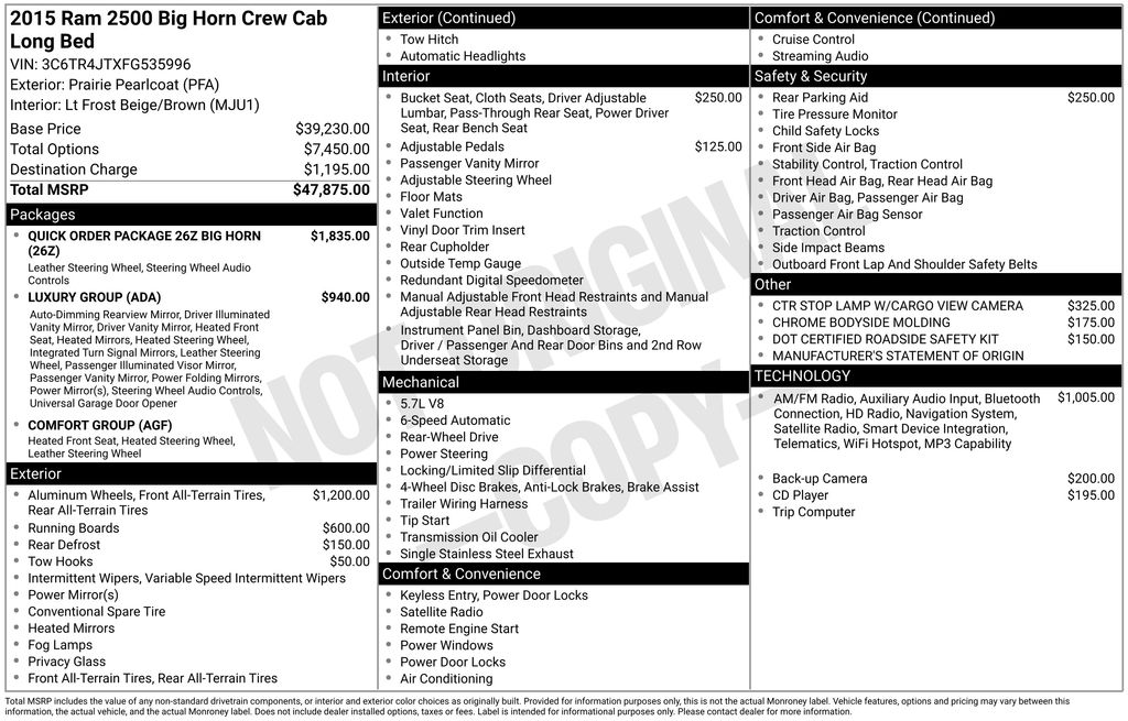 Whether hauling heavy loads or just commuting in comfort, this 2015 Ram 2500 Big Horn is up to the task. The spacious, well-appointed cabin and impressive capabilities make it a versatile choice for work or play.