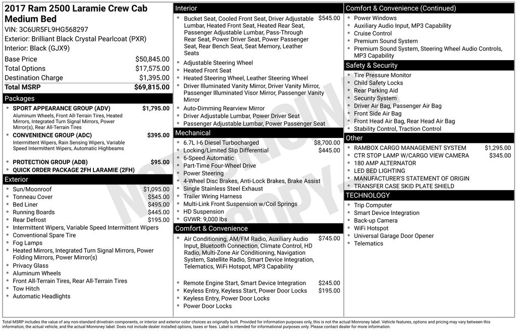Whether you're tackling a tough job site, towing a heavy trailer, or just enjoying the ride, this 2017 Ram 2500 Laramie is built to deliver. With its exceptional capabilities, premium features, and rugged good looks, this truck is a must-see for any discerning truck buyer. Schedule a test drive today and experience the power and versatility of this remarkable Ram 2500.