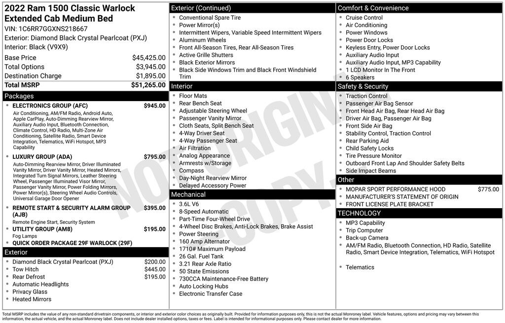 2022 RAM 1500 Classic Warlock 4WD ONE OWNER ⢠CLEAN CARFAX ⢠46K MILES!