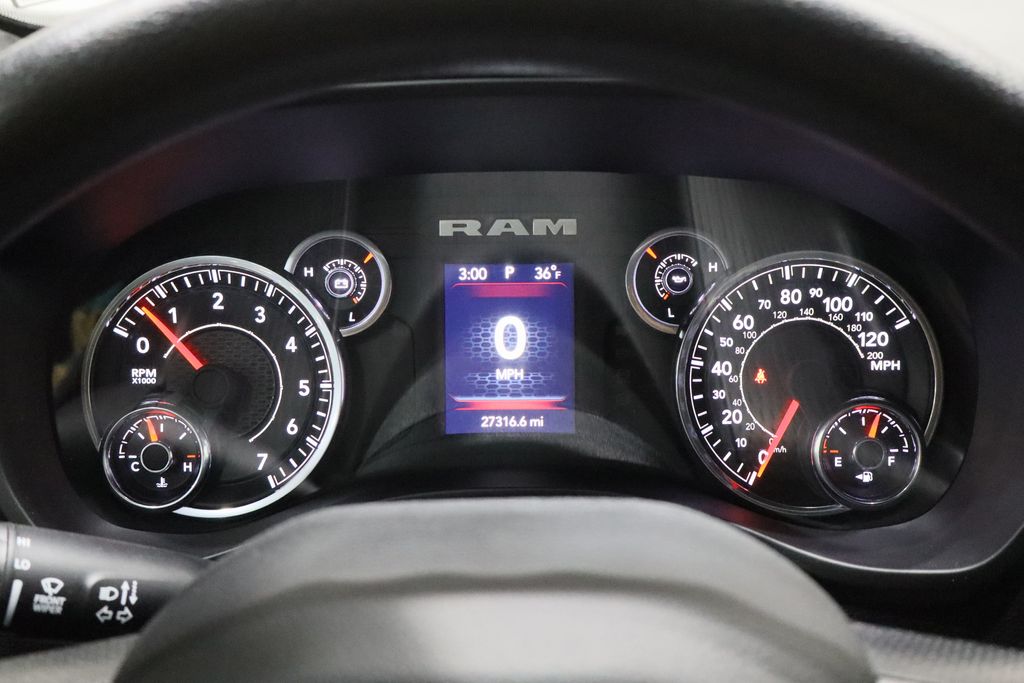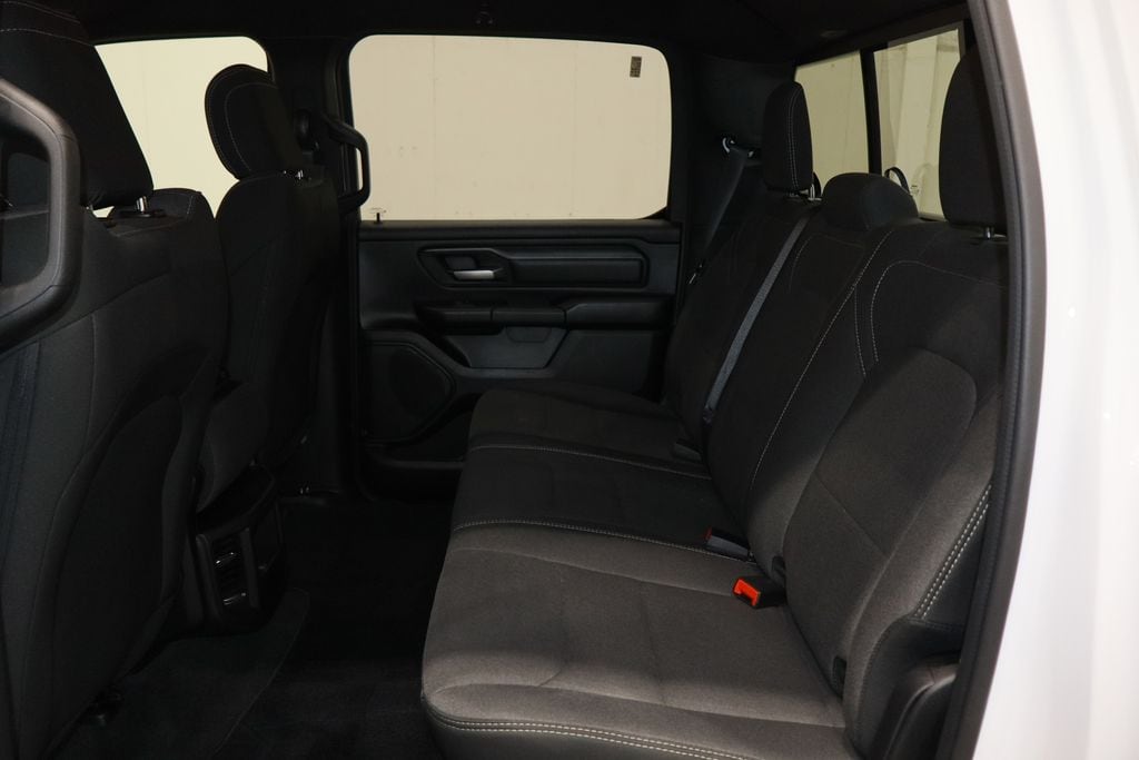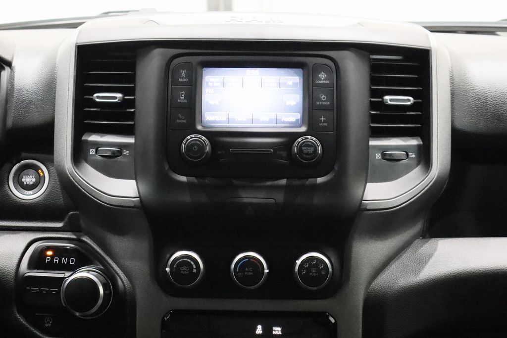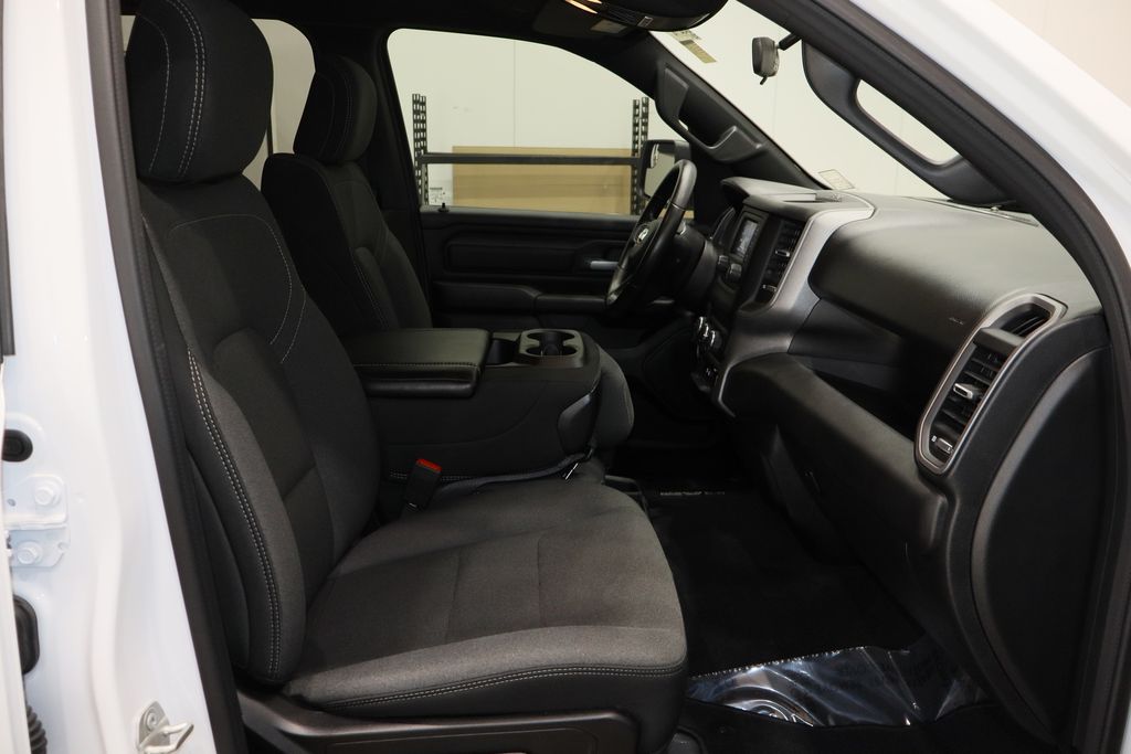 2nd Row In Floor Storage Bins, 3 Rear Seat Head Restraints, 4 Way Front Headrests, 4-Wheel Disc Brakes, 40/20/40 Split Bench Seat, 48V Belt Starter Generator, 6 Speakers, ABS brakes, Air Conditioning, AM/FM radio, Anti-Spin Differential Rear Axle, Black Interior Accents, Body Color Front Bumper, Body Color Rear Bumper w/Step Pads, Brake assist, Carpet Floor Covering, Class IV Receiver Hitch, Cloth 40/20/40 Bench Seat, Compass, Delay-off headlights, Driver door bin, Dual front impact airbags, Dual front side impact airbags, Electronic Stability Control, Emergency communication system: RAM Connect, Exterior Mirrors w/Heating Element, For Details, Visit DriveUconnect.com, For More Info, Call 800-643-2112, Front & Rear Floor Mats, Front anti-roll bar, Front Center Armrest, Front Center Seat Cushion Storage, Front Fog Lamps, Front reading lights, Front wheel independent suspension, Fully automatic headlights, Global Telematics Box Module (TBM), Grille Surround 1 Body Color Texture 1 Black, Heated door mirrors, Heavy Duty Vinyl 40/20/40 Split Bench Seat, Illuminated entry, Low tire pressure warning, Manual Adjust 4-Way Driver Seat, Manual Adjust 4-Way Front Passenger Seat, MOPAR Front & Rear Rubber Floor Mats, Occupant sensing airbag, Outside temperature display, Overhead airbag, Overhead console, Panic alarm, ParkView Rear Back-Up Camera, Passenger door bin, Passenger vanity mirror, Power door mirrors, Power steering, Power windows, Quick Order Package 23A Tradesman, Radio data system, Radio: Uconnect 3 w/5" Display, RAM Grille Badge - Chrome, Rear anti-roll bar, Rear Folding Seat, Rear Power Sliding Window, Rear step bumper, Remote keyless entry, SiriusXM Radio Service, SiriusXM Satellite Radio, Speed control, Sport Appearance Package, Tachometer, Telescoping steering wheel, Tilt steering wheel, Traction control, Tradesman Level 1 Equipment Group, Variably intermittent wipers, Voltmeter, Wheels: 18" x 7.5" Steel Painted, Wheels: 20" x 9" Aluminum Chrome Clad.