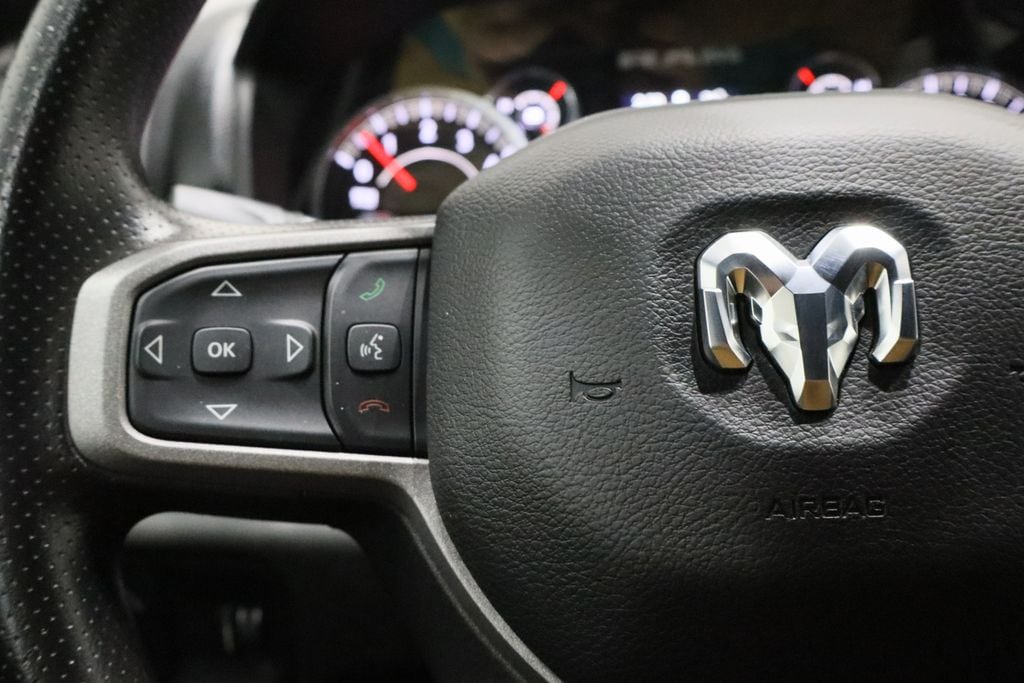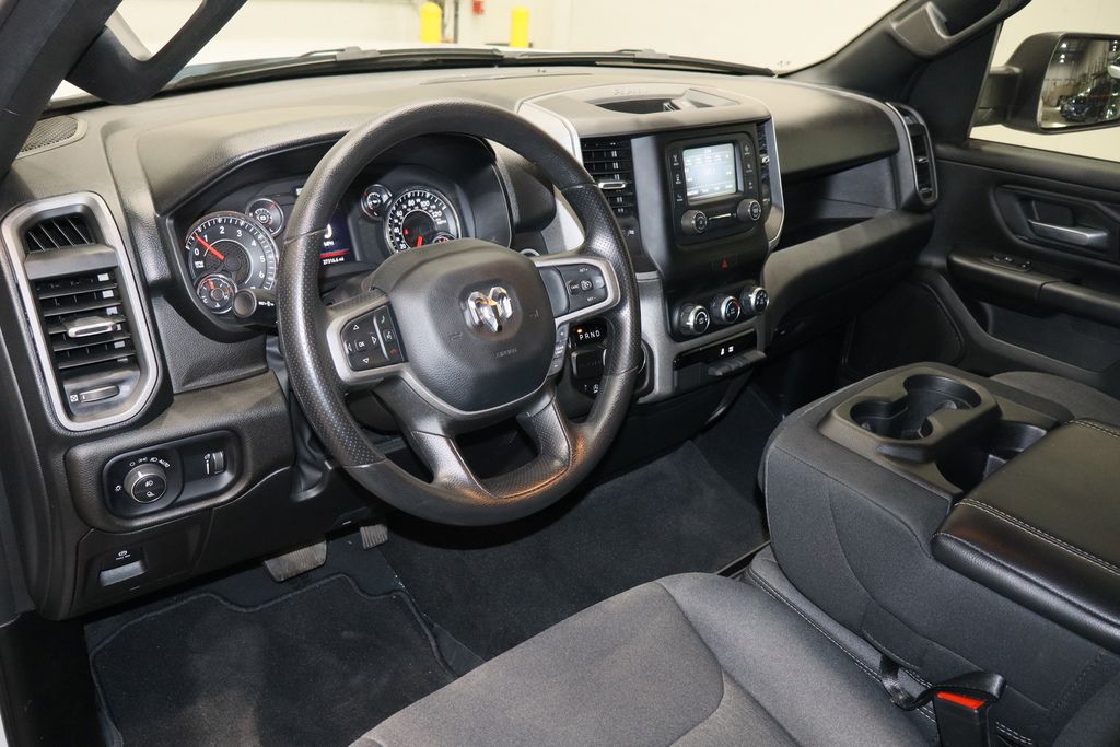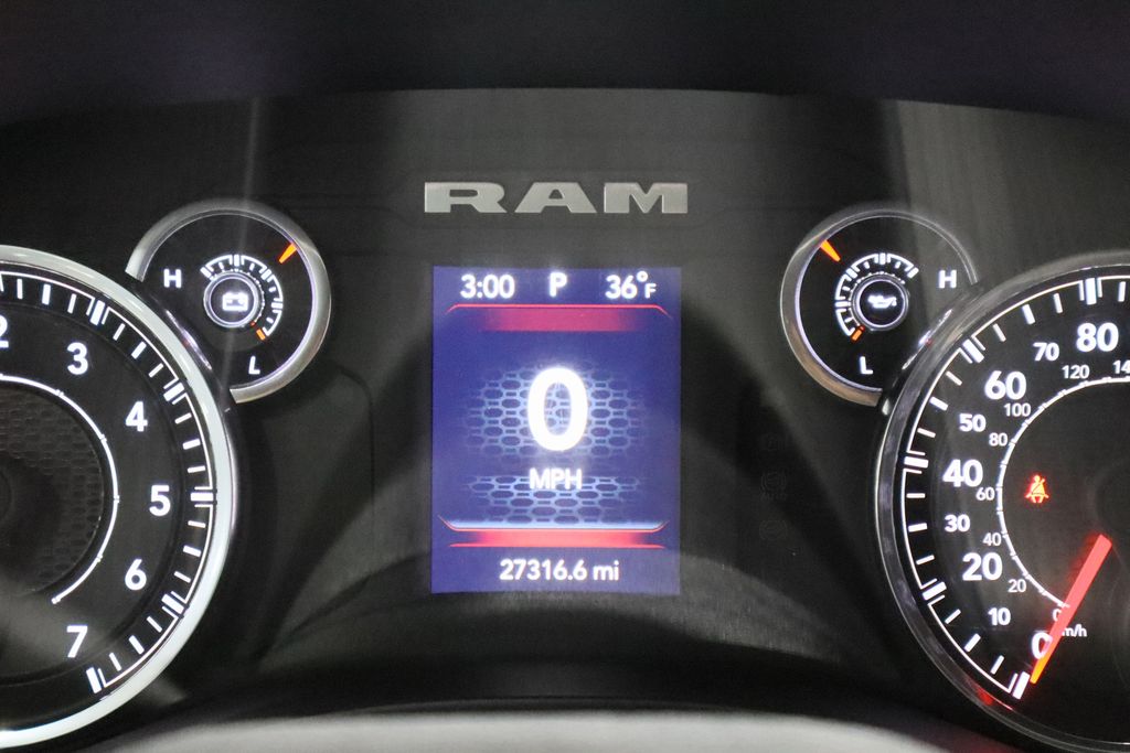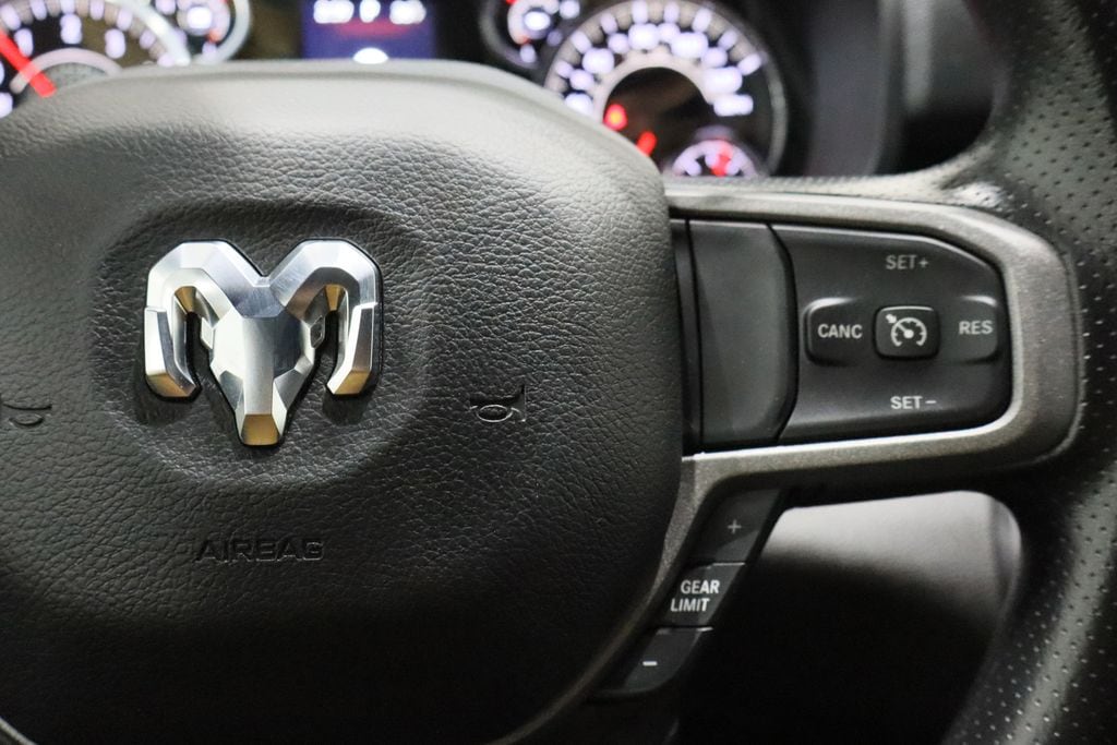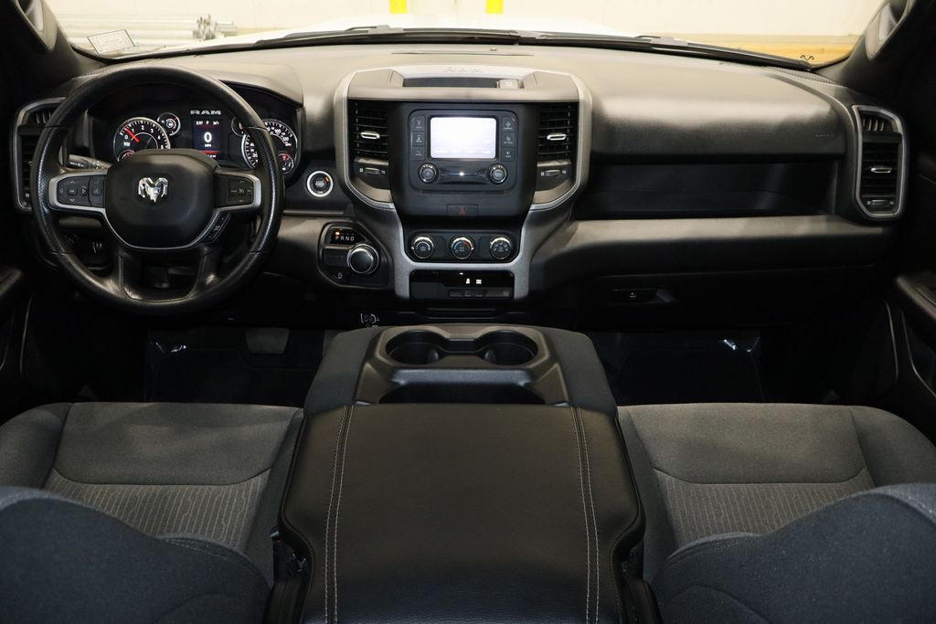 2nd Row In Floor Storage Bins, 3 Rear Seat Head Restraints, 4 Way Front Headrests, 4-Wheel Disc Brakes, 40/20/40 Split Bench Seat, 48V Belt Starter Generator, 6 Speakers, ABS brakes, Air Conditioning, AM/FM radio, Anti-Spin Differential Rear Axle, Black Interior Accents, Body Color Front Bumper, Body Color Rear Bumper w/Step Pads, Brake assist, Carpet Floor Covering, Class IV Receiver Hitch, Cloth 40/20/40 Bench Seat, Compass, Delay-off headlights, Driver door bin, Dual front impact airbags, Dual front side impact airbags, Electronic Stability Control, Emergency communication system: RAM Connect, Exterior Mirrors w/Heating Element, For Details, Visit DriveUconnect.com, For More Info, Call 800-643-2112, Front & Rear Floor Mats, Front anti-roll bar, Front Center Armrest, Front Center Seat Cushion Storage, Front Fog Lamps, Front reading lights, Front wheel independent suspension, Fully automatic headlights, Global Telematics Box Module (TBM), Grille Surround 1 Body Color Texture 1 Black, Heated door mirrors, Heavy Duty Vinyl 40/20/40 Split Bench Seat, Illuminated entry, Low tire pressure warning, Manual Adjust 4-Way Driver Seat, Manual Adjust 4-Way Front Passenger Seat, MOPAR Front & Rear Rubber Floor Mats, Occupant sensing airbag, Outside temperature display, Overhead airbag, Overhead console, Panic alarm, ParkView Rear Back-Up Camera, Passenger door bin, Passenger vanity mirror, Power door mirrors, Power steering, Power windows, Quick Order Package 23A Tradesman, Radio data system, Radio: Uconnect 3 w/5" Display, RAM Grille Badge - Chrome, Rear anti-roll bar, Rear Folding Seat, Rear Power Sliding Window, Rear step bumper, Remote keyless entry, SiriusXM Radio Service, SiriusXM Satellite Radio, Speed control, Sport Appearance Package, Tachometer, Telescoping steering wheel, Tilt steering wheel, Traction control, Tradesman Level 1 Equipment Group, Variably intermittent wipers, Voltmeter, Wheels: 18" x 7.5" Steel Painted, Wheels: 20" x 9" Aluminum Chrome Clad.