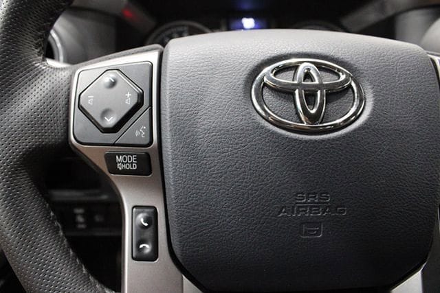 The Tacoma's bold, rugged styling is complemented by 18-inch polished alloy wheels, body-color bumpers, and turn signal indicator mirrors. LED headlights and fog lights ensure excellent visibility, while the rear parking sensors and backup camera make maneuvering a breeze.