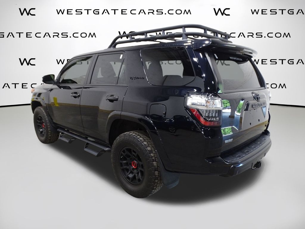 Clean CARFAX. CARFAX One-Owner. 4WD, 15 Speakers, 3.727 Axle Ratio, 4-Wheel Disc Brakes, ABS brakes, Air Conditioning, Alloy wheels, AM/FM radio: SiriusXM, Anti-whiplash front head restraints, Apple CarPlay/Android Auto, Auto High-beam Headlights, Auto-dimming Rear-View mirror, Automatic temperature control, Black Lug Nuts, Brake assist, Bumpers: body-color, Compass, Driver door bin, Driver vanity mirror, Dual front impact airbags, Dual front side impact airbags, Dual Zone Auto Climate Control, Electronic Stability Control, Emergency communication system: Safety Connect (1-year trial), Exterior Parking Camera Rear, Fog Lights, Fox Shocks, Front anti-roll bar, Front Bucket Seats, Front Center Armrest, Front dual zone A/C, Front fog lights, Front reading lights, Front wheel independent suspension, Garage Door Opener, Garage door transmitter: HomeLink, Heated door mirrors, Heated Front Bucket Seats, Heated front seats, Heated Outside Rear-View Mirrors, Illuminated entry, Knee airbag, Leather Shift Knob, Low tire pressure warning, Moonroof w/Tilt Up & Slide, Multi-Terrain Back Monitor, Navigation System, Occupant sensing airbag, Outside temperature display, Overhead airbag, Overhead console, Panic alarm, Passenger door bin, Passenger vanity mirror, Power door mirrors, Power driver seat, Power moonroof, Power passenger seat, Power steering, Power windows, Radio: Premium Audio w/JBL, Rear anti-roll bar, Rear seat center armrest, Rear window defroster, Rear window wiper, Remote keyless entry, Roof rack, Roof Rack, Security system, SofTex Seat Trim, Speed control, Speed-sensing steering, Split folding rear seat, Spoiler, Steering wheel mounted audio controls, Tachometer, Telescoping steering wheel, Tilt steering wheel, Traction control, TRD Pro All Weather Floor Liner, TRD Pro Badging, TRD Pro Exhaust, TRD Shift Knob, Trip computer, Variably intermittent wipers, Wheel Locks, Wheels: 17" Matte Black Flow-Formed TRD Alloy, 4WD.