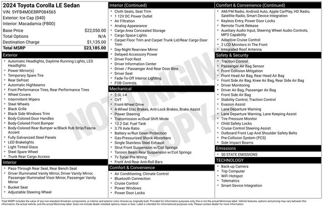 Whether commuting, running errands, or embarking on a road trip, this 2024 Toyota Corolla LE is the perfect companion. Discover the unbeatable value and peace of mind that come with this well-equipped, low-mileage sedan.