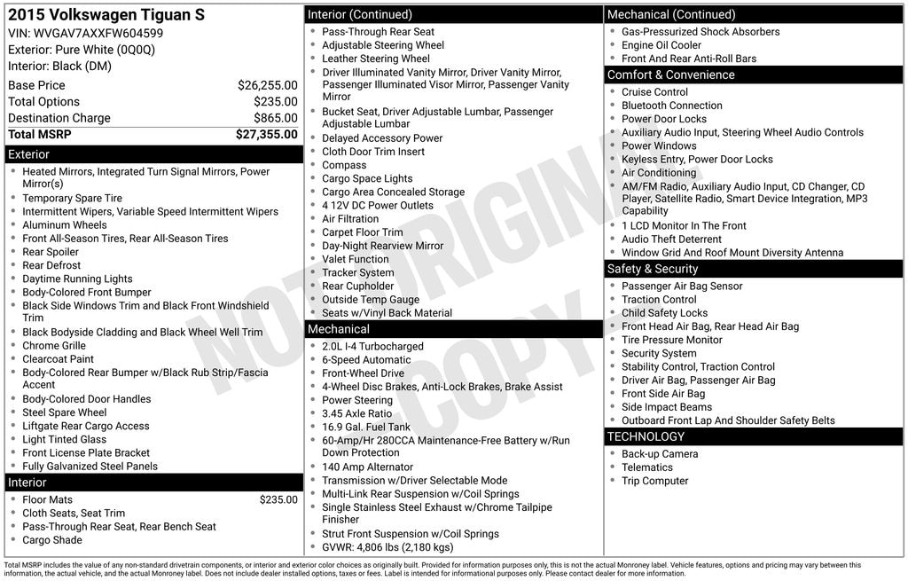 Used 2015 VolkswagenTiguan S