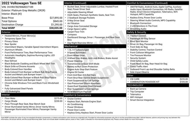 2022 Volkswagen Taos 1.5T SE
