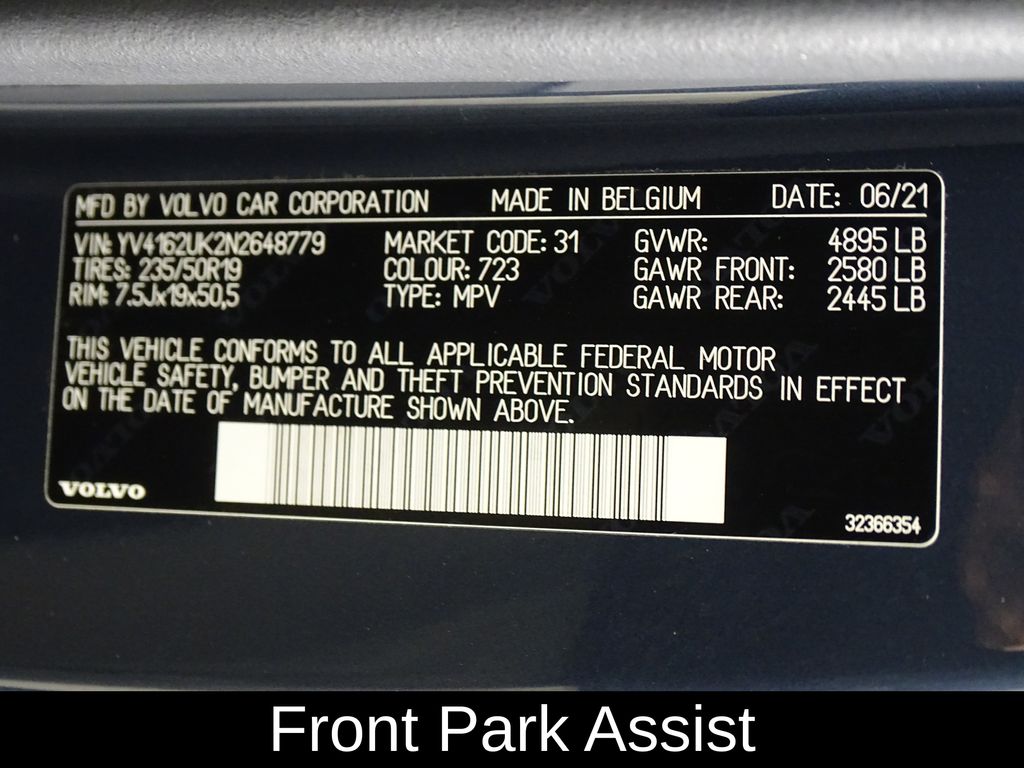 12V Outlet in Cargo Area, 2-Zone Automatic Climate Control w/CleanZone, 360 Degree Surround View Camera, 8-Way Power Passenger Seat w/4-Way Power Lumbar, Advanced Package, Cargo Tray, Climate Package, Front Foglights, Front Park Assist, Headlight High Pressure Cleaning, Heated Rear Seats, Heated Steering Wheel, HomeLink Garage Door Transmitter, Inductive Charging, Interior High Level Illumination, Keyless Entry & Drive w/Illuminated Door Handles, License Plate Frame, Pilot Assist Driver Assistance System, Power Folding Rear Head Restraints, Premium Package, Protection Package Premier, Removable/Folding Load Floor w/Grocery Bag Holders, Rubber Floor Mats, Sensus Navigation Pro, Wheel Locks, 4-Wheel Disc Brakes, 8 Speakers, ABS brakes, Air Conditioning, Alloy wheels, AM/FM radio: SiriusXM, Anti-whiplash front head restraints, Apple CarPlay/Android Auto, Auto High-beam Headlights, Auto-dimming door mirrors, Auto-dimming Rear-View mirror, Automatic temperature control, Brake assist, Bumpers: body-color, Delay-off headlights, Driver door bin, Driver vanity mirror, Dual front impact airbags, Dual front side impact airbags, Electronic Stability Control, Emergency communication system: Volvo On-Call, Exterior Parking Camera Rear, Four wheel independent suspension, Front anti-roll bar, Front Bucket Seats, Front Center Armrest, Front Heated Bucket Seats, Front reading lights, Fully automatic headlights, Hands-Free Power Tailgate, Heated door mirrors, Heated front seats, Illuminated entry, Knee airbag, Leather Seating Surfaces, Leather Shift Knob, Leather steering wheel, Low tire pressure warning, Memory seat, Occupant sensing airbag, Outside temperature display, Overhead airbag, Panic alarm, Passenger door bin, Passenger vanity mirror, Power door mirrors, Power driver seat, Power steering, Power windows, Premium audio system: Sensus Connect, Radio data system, Radio: AM/FM/HD, Rain sensing wipers, Rear anti-roll bar, Rear fog lights, Rear reading lights, Rear seat center armrest, Rear window defroster, Rear window wiper, Remote keyless entry, Roof rack: rails only, Security system, Speed control, Speed-sensing steering, Split folding rear seat, Spoiler, Steering wheel mounted audio controls, Tachometer, Telescoping steering wheel, Tilt steering wheel, Traction control, Trip computer, Turn signal indicator mirrors, Variably intermittent wipers, Wheels: 18" 5-Spoke Silver Alloy, Wheels: 19" 5-Spoke Black Diamond Cut Alloy, 12V Outlet in Cargo Area, 2-Zone Automatic Climate Control w/CleanZone, 360 Degree Surround View Camera, 8-Way Power Passenger Seat w/4-Way Power Lumbar, Advanced Package, Cargo Tray, Climate Package, Front Foglights, Front Park Assist, Headlight High Pressure Cleaning, Heated Rear Seats, Heated Steering Wheel, HomeLink Garage Door Transmitter, Inductive Charging, Interior High Level Illumination, Keyless Entry & Drive w/Illuminated Door Handles, License Plate Frame, Pilot Assist Driver Assistance System, Power Folding Rear Head Restraints, Premium Package, Protection Package Premier, Removable/Folding Load Floor w/Grocery Bag Holders, Rubber Floor Mats, Sensus Navigation Pro, Wheel Locks.
